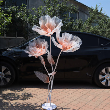 Decorazione di scena di nozze fatta a mano in seta artificiale grandi fiori di Organza giganti in piedi 3 pz/set per decorazione di vetrine